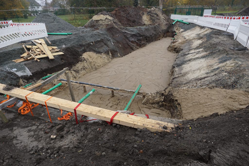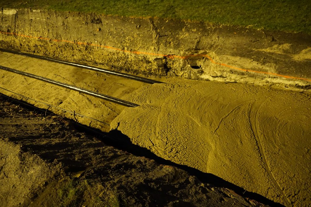 • Erstellung der Grabensohle aus Flüssigboden